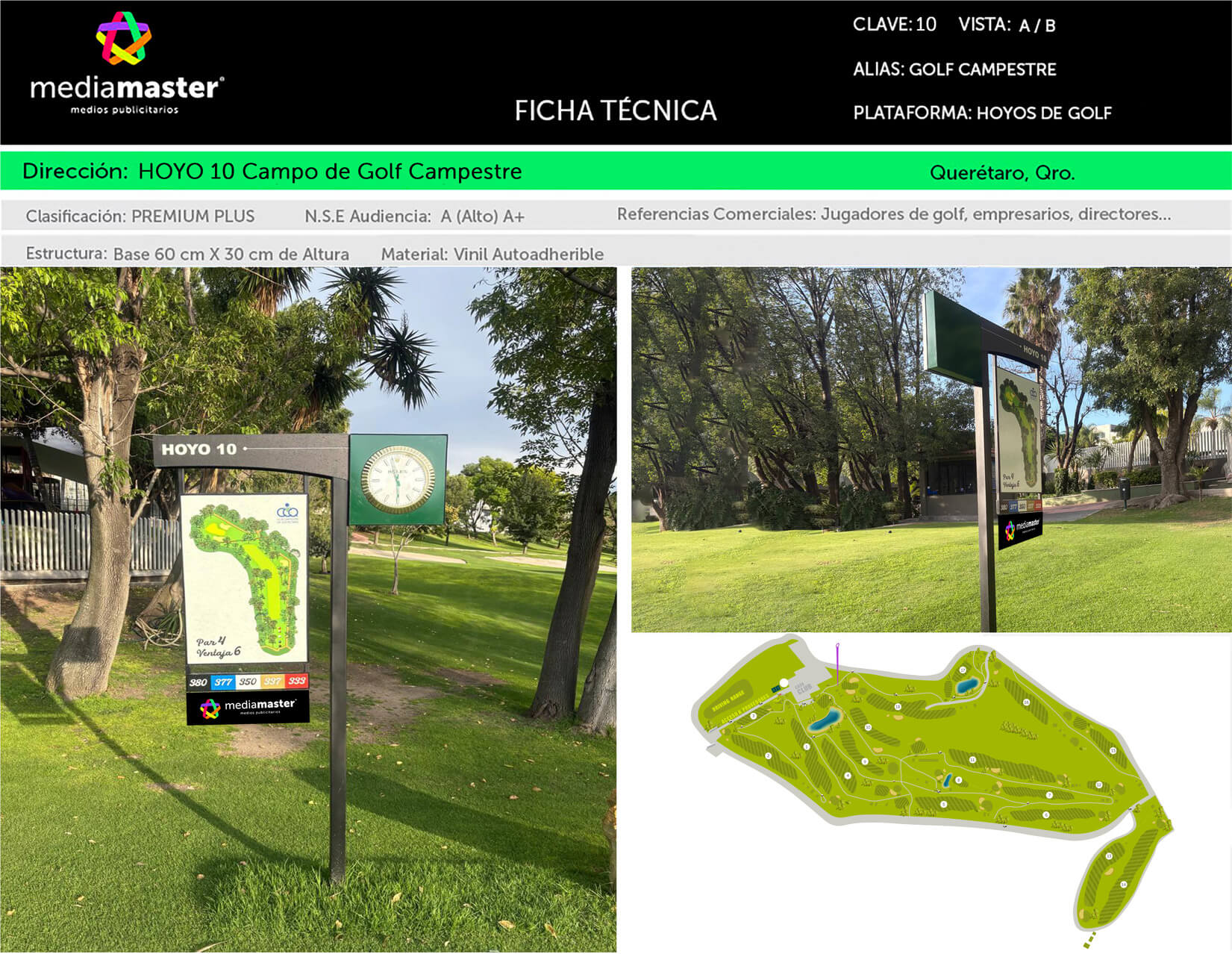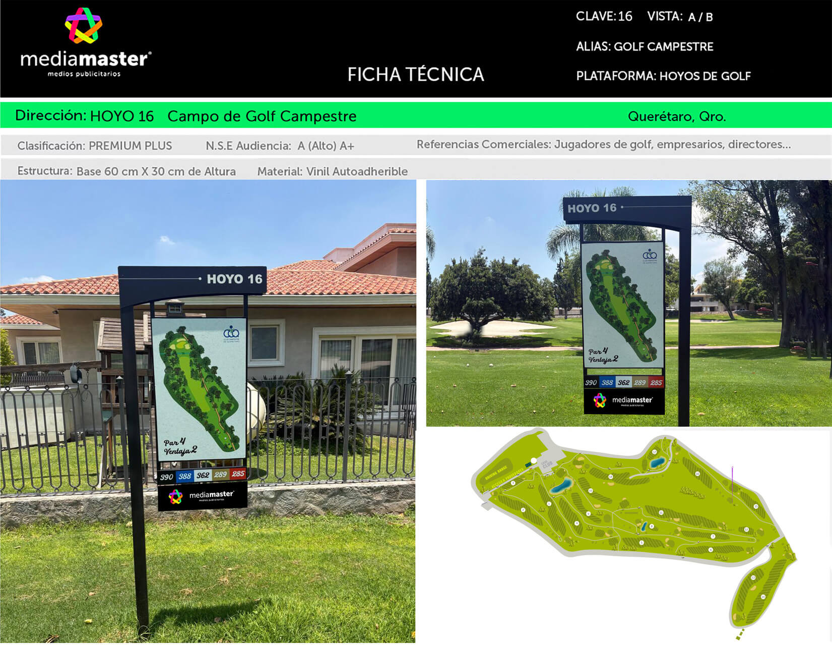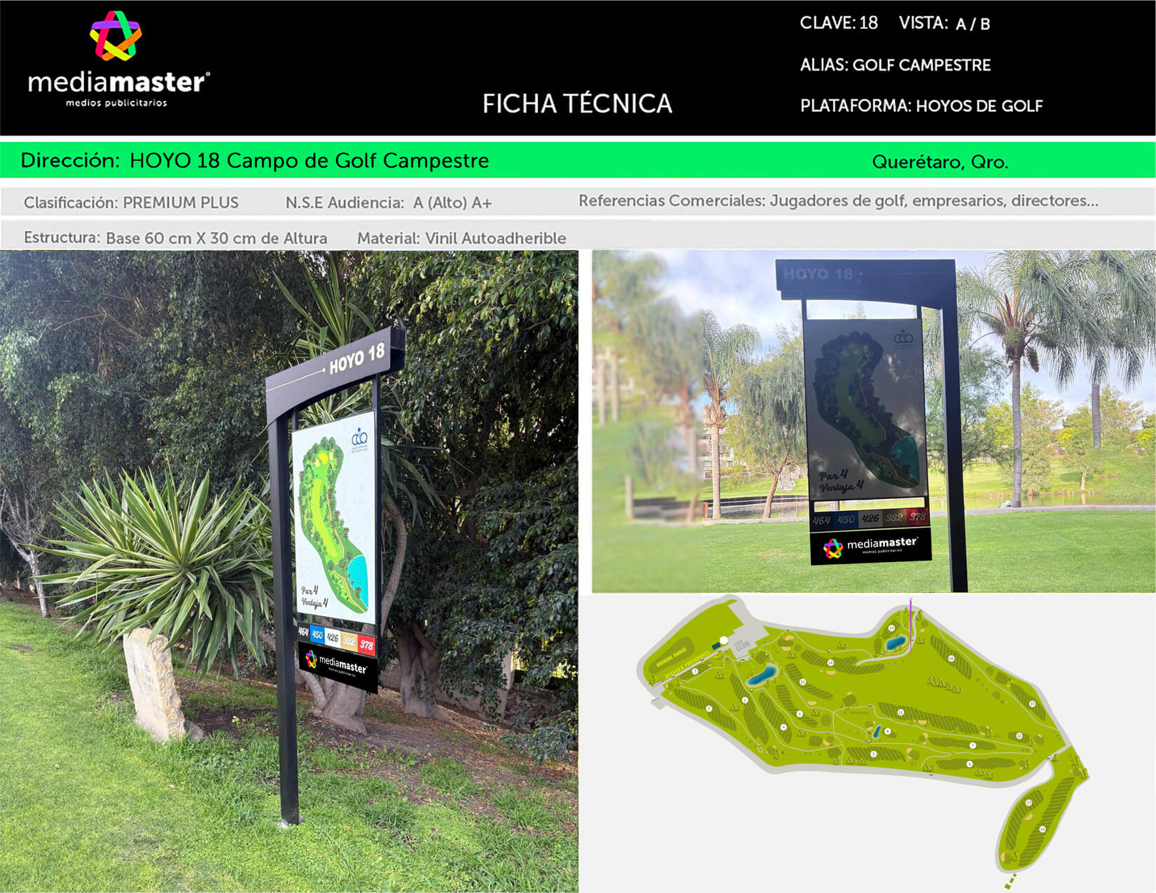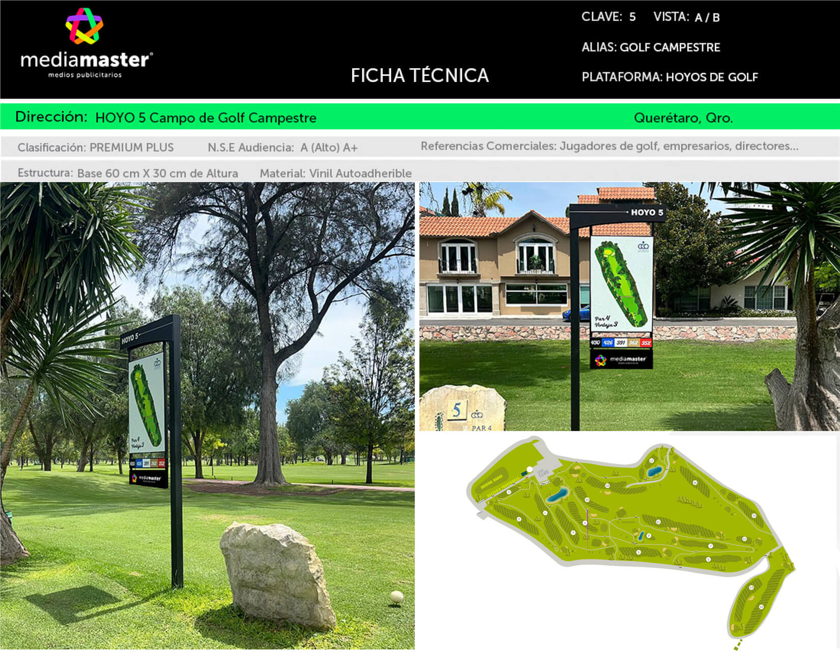Un referente en materia de Golf a nivel Nacional, será sin duda el majestuoso campo de 18 hoyos que ofrece el Club de Golf Campestre, que, a lo largo de los años, ha evolucionado de manera notable en favor del socios, jugadores y usuarios. Anúnciate con nosotros y visualiza tu marca en medio de este importante campo de golf, pues en MEDIAMASTER®, te ofrecemos la difusión de tu producto o servicio, de manera armónica entre las instalaciones, el deporte y la naturaleza.