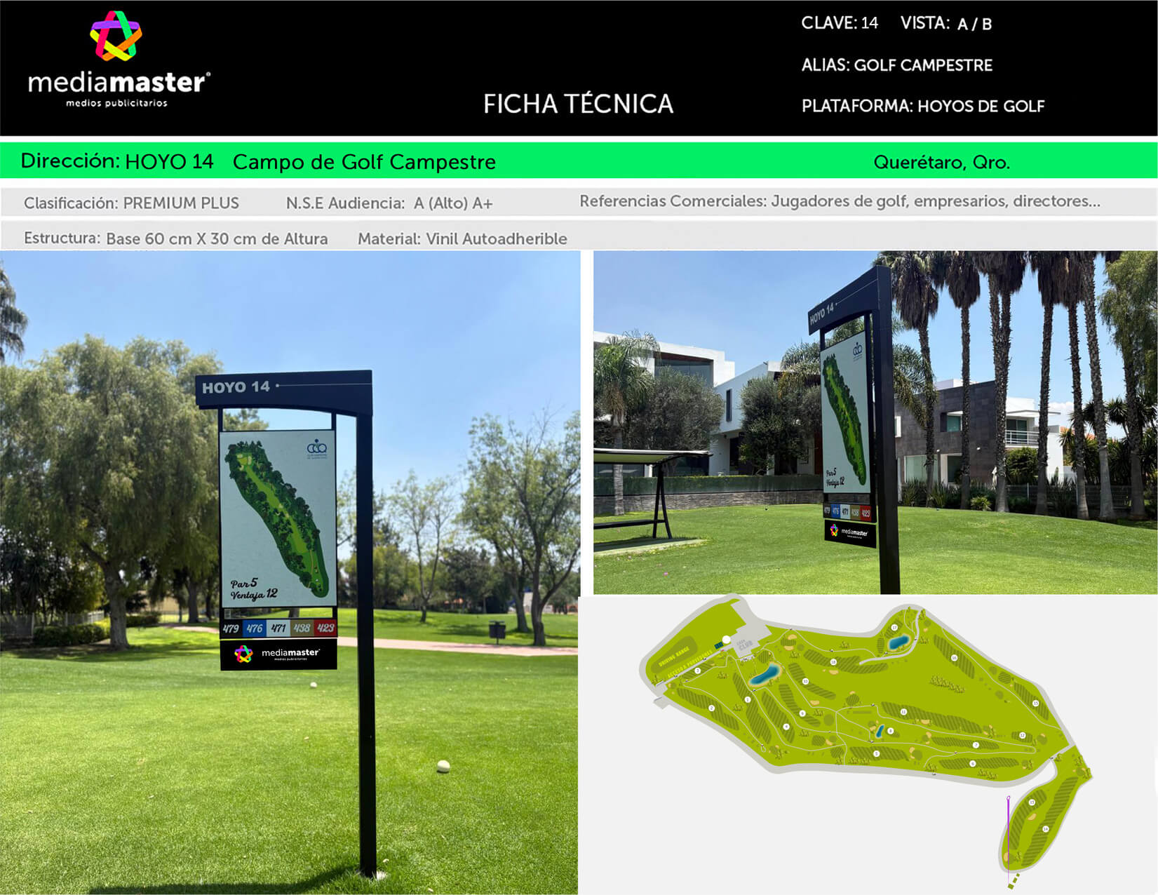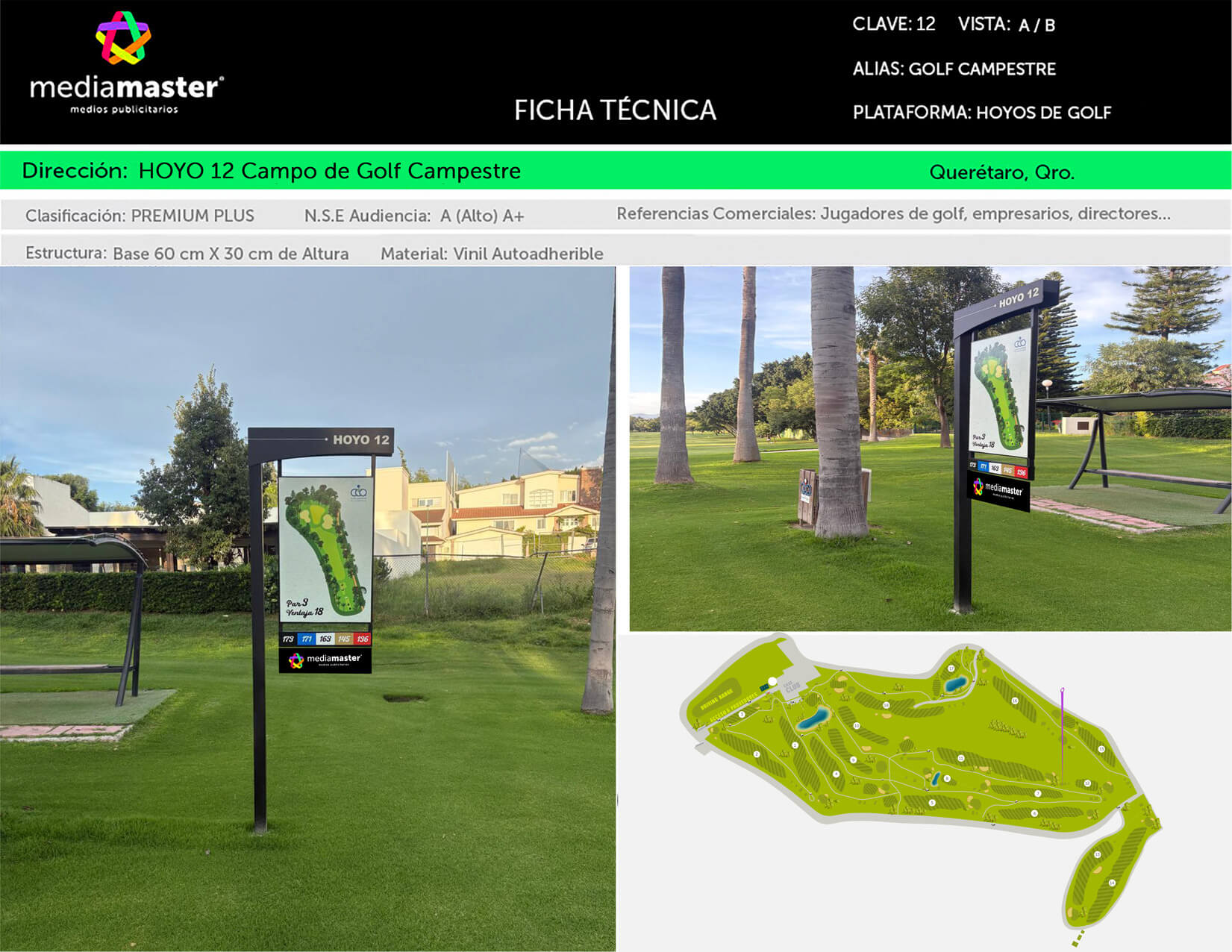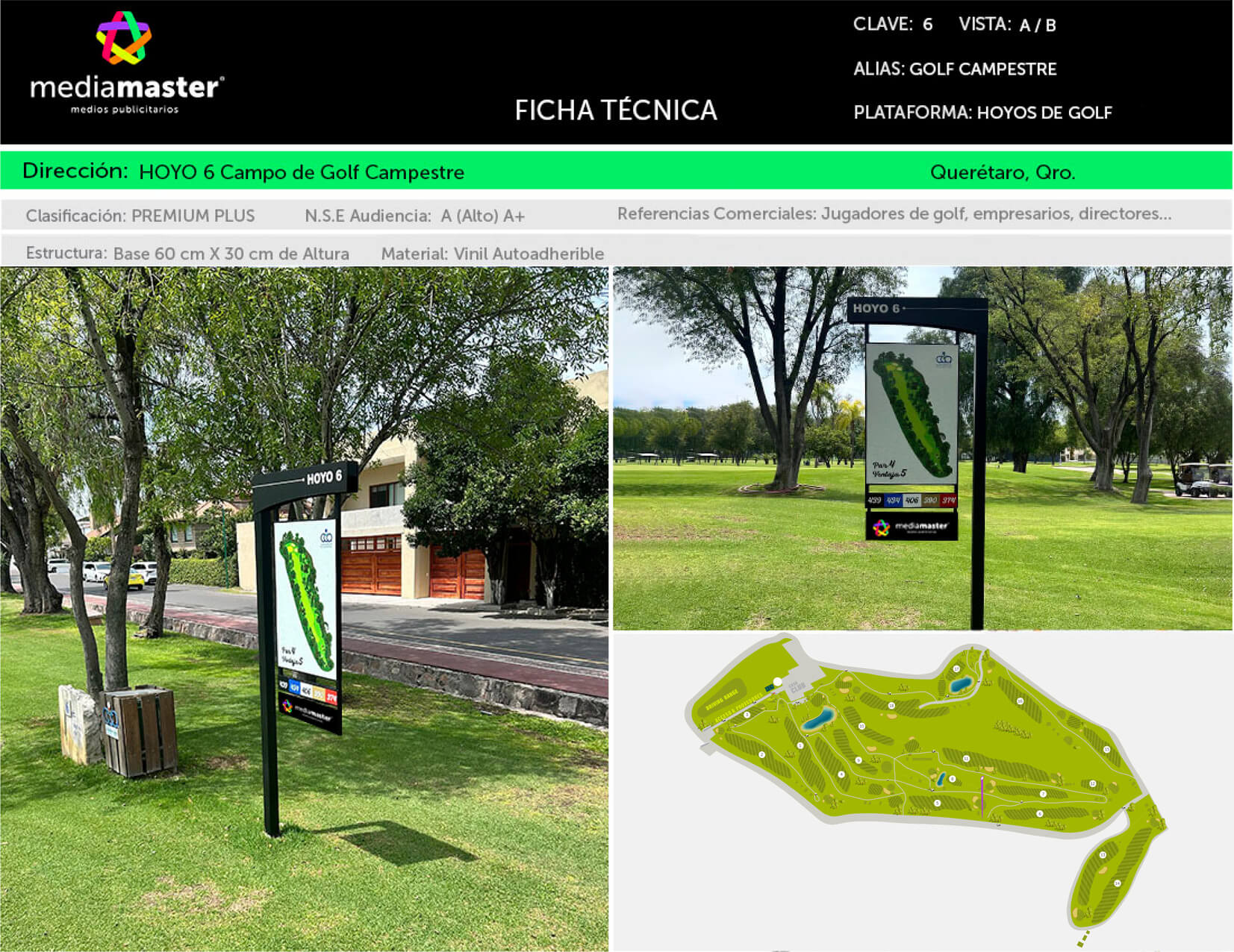 Un referente en materia de Golf a nivel Nacional, será sin duda el majestuoso campo de 18 hoyos que ofrece el Club de Golf Campestre, que, a lo largo de los años, ha evolucionado de manera notable en favor del socios, jugadores y usuarios. Anúnciate con nosotros y visualiza tu marca en medio de este importante campo de golf, pues en MEDIAMASTER®, te ofrecemos la difusión de tu producto o servicio, de manera armónica entre las instalaciones, el deporte y la naturaleza.