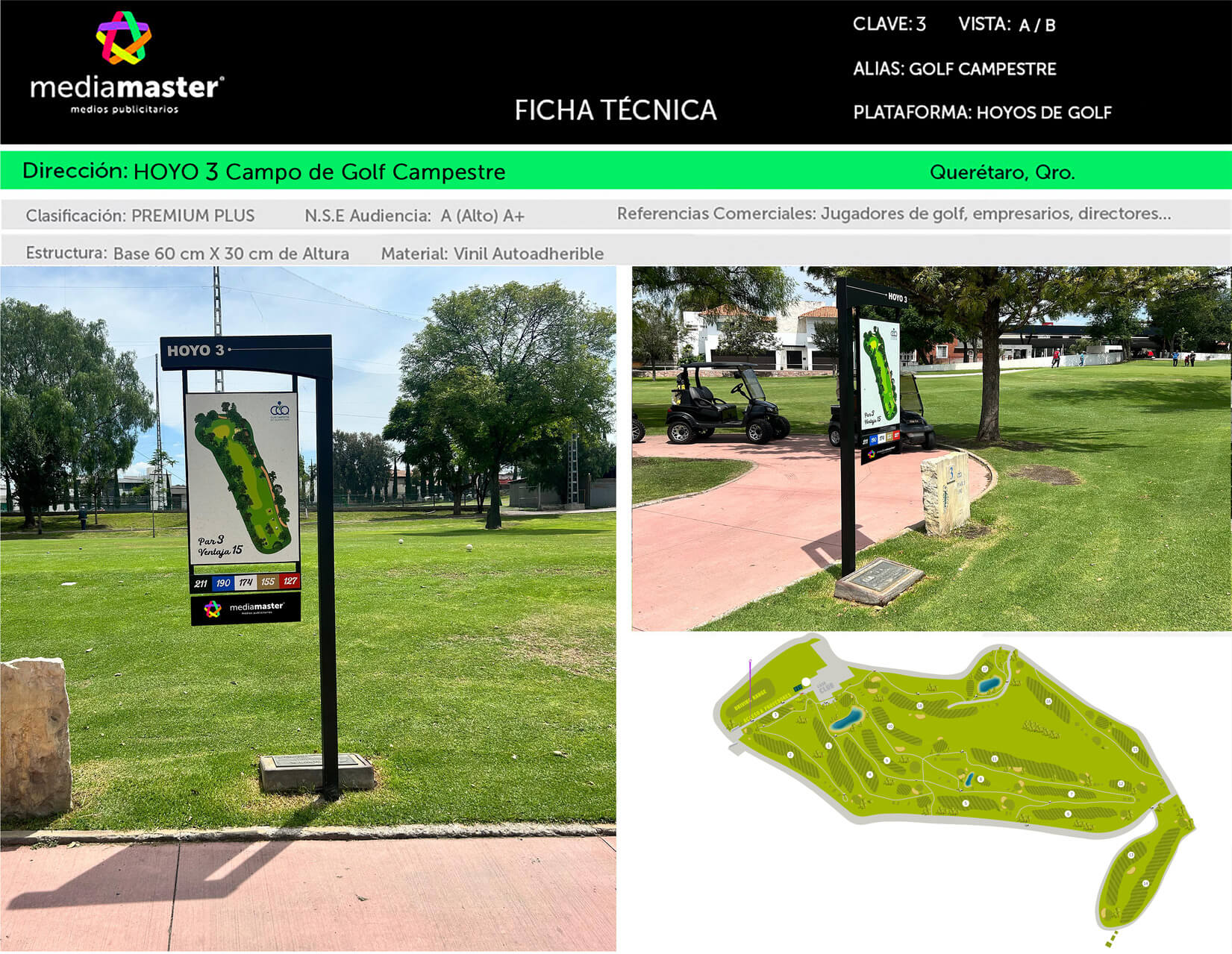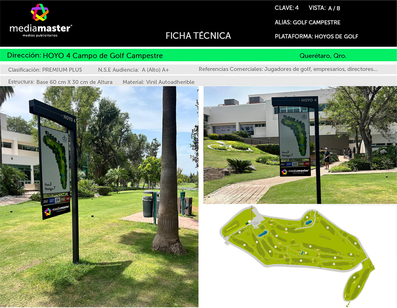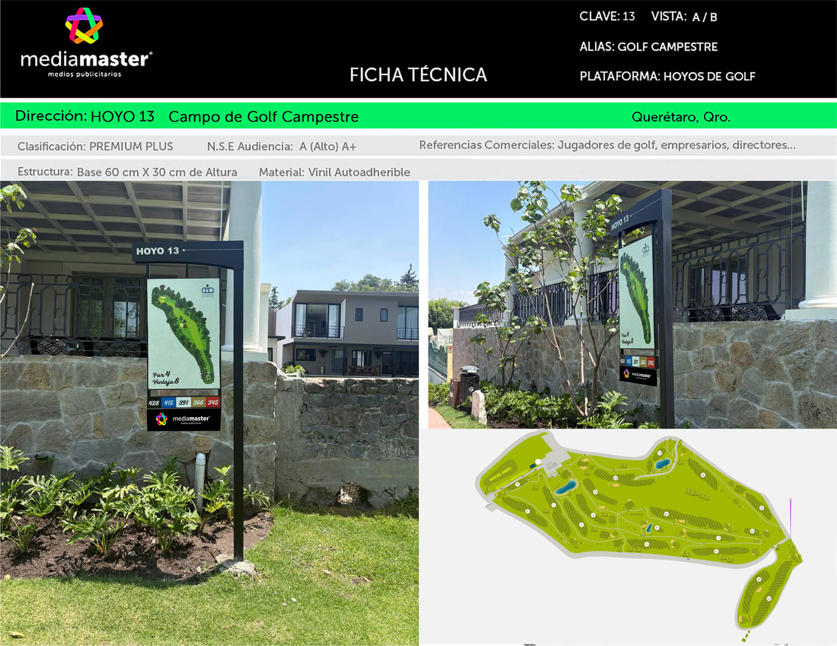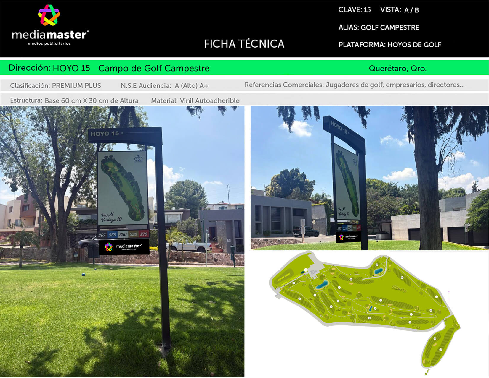 Un referente en materia de Golf a nivel Nacional, será sin duda el majestuoso campo de 18 hoyos que ofrece el Club de Golf Campestre, que, a lo largo de los años, ha evolucionado de manera notable en favor del socios, jugadores y usuarios. Anúnciate con nosotros y visualiza tu marca en medio de este importante campo de golf, pues en MEDIAMASTER®, te ofrecemos la difusión de tu producto o servicio, de manera armónica entre las instalaciones, el deporte y la naturaleza.